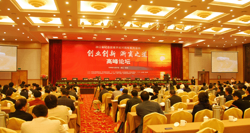 浙江省政府新聞辦、省質(zhì)量技術(shù)監(jiān)督局舉辦的“創(chuàng)業(yè)創(chuàng)新 浙商之道”高峰論壇于10月27日在杭州舉行。來自浙江省內(nèi)外的浙商代表、經(jīng)濟(jì)學(xué)界專家和各級(jí)政府官員等近千人與會(huì)。省委常委、宣傳部長(zhǎng)黃坤明講話,副省長(zhǎng)王建滿出席論壇。金洲集團(tuán)董事長(zhǎng)俞錦方在論壇演講發(fā)言提出:轉(zhuǎn)型是浙商發(fā)展的必由之路。
