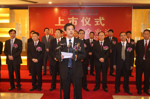 金洲管道董事長沈淦榮在上市儀式上致辭