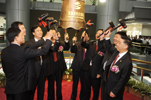 出席的嘉賓在深圳證券交易所敲響寶鐘