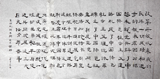 近日,為慶祝中國共產(chǎn)黨成立95周年,積極推進(jìn)“兩學(xué)一做”活動(dòng)深入開展,提升黨員、職工的文化藝術(shù)素養(yǎng)和書寫能力,進(jìn)一步構(gòu)建和諧企業(yè)、和諧社會(huì),不斷營造企業(yè)職工愛國愛黨、崇德向善的濃厚氛圍,金洲集團(tuán)黨工團(tuán)聯(lián)合開展“手抄黨章”比賽活動(dòng)。本次比賽得到了廣大黨員、職工的積極參與,共收到120余件作品,其中2件作品全文抄錄黨章。