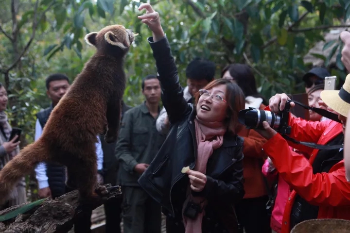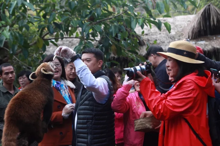 ▲企業(yè)家與小熊貓等野生動(dòng)物進(jìn)行親密互動(dòng),人與野生動(dòng)物如此友好的相處模式,讓現(xiàn)場(chǎng)的人驚喜不已