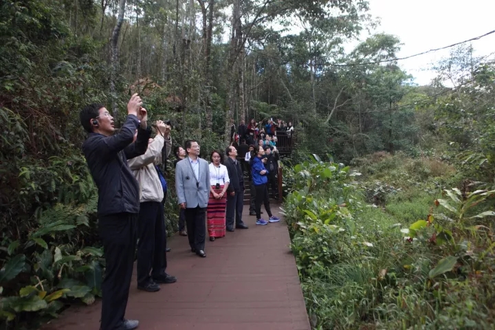 普洱太陽河國(guó)家森林公園作為企業(yè)家的考察對(duì)象,是湄公河集團(tuán)乃至普洱市、云南省綠色發(fā)展、生物多樣性保護(hù)、可持續(xù)發(fā)展的典范,也是中國(guó)第一家“世界和平公園”。在開發(fā)初期,因基礎(chǔ)設(shè)施建設(shè)帶來了一些植被破壞問題,在湄公河集團(tuán)堅(jiān)定的“綠色可持續(xù)發(fā)展”理念下,將“原住民”請(qǐng)了回來,恢復(fù)植被原貌,向世界各地的到訪游客展示著多種生物在這塊綠色瑰寶共生共榮的和諧景象。