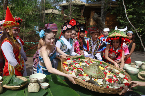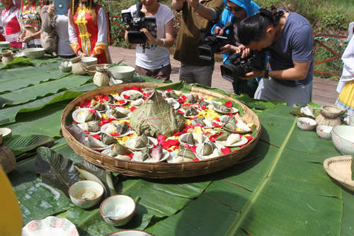 參加本屆普洱太陽(yáng)河國(guó)家公園舉辦的少數(shù)民族共有26個(gè),其中有25個(gè)是少數(shù)民族,都是云南特有的少數(shù)民族,普洱當(dāng)?shù)氐纳贁?shù)民族也在內(nèi),分別是彝族、佤族、拉祜族、哈尼族、傣族。除了少數(shù)民族還有1個(gè)漢族,共組成26種民族齊聚國(guó)家公園參加這次“少數(shù)民族粽子節(jié)”。這次活動(dòng)不僅有來(lái)自各個(gè)地方的不同民族的特色食材,而且有的民族在端午節(jié)是沒(méi)有包粽子的習(xí)俗,為了讓更多人了解自己民族的特色食材,這些民族把食材融入到粽子里,供大家品嘗、投票。最后由這26個(gè)民族齊心協(xié)力包出了一個(gè)重達(dá)5.78公斤的“民族團(tuán)結(jié)粽”,堪稱“云南第一粽”。