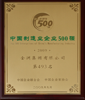 2009年中國(guó)制造業(yè)企業(yè)500強(qiáng)證書