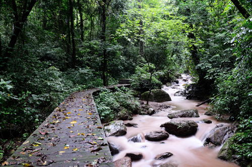 木棧道是森林里最自然的人工寫實(shí)。踩在踏板上發(fā)出與自然和諧的聲響,茂密的參天大樹透射出幾縷陽(yáng)光灑在身上好不愜意,比起高樓聳立穿梭在飛奔的人群中與時(shí)間賽跑,我更愿意呆在這,關(guān)掉與外界一切聯(lián)系,做個(gè)山間野夫用力呼吸來凈化我已染塵多年的身心。在這里耳邊只有風(fēng)聲、蟲鳴、鳥叫,置身其中仿佛都不是自己,全身飄飄然放飛著靈魂,跟隨著水聲穿過密林來到一片開闊的土地上,高山流水,云霧繚繞仿佛來到仙境中,導(dǎo)游告訴我們說:“這是要下雨的節(jié)奏,不過沒關(guān)系,下雨了森林就開始唱歌了?!惫黄淙唬甑物h15.jpg落下來,奇妙的是它并不是涼的,飄灑在身上唱起了歡快的“滴答”歌,爬滿粗藤的大樹互相在雨里講訴著古老的故事,這個(gè)時(shí)候你只要用心聽,你就真的能聽到森林在唱歌,雨沒過多久就停了,我們圍成圈坐下來,呼吸著來自泥土的芬芳,雨后的森林更是通透,蝴蝶在溪谷間翩翩起舞,各種水禽在濕地印腳丫,偶爾會(huì)有幾只野猴來到你身邊向你討食,打量你一番甩尾走人,森林里隨處可見各種珍貴的活化石“石斛”、“中華桫欏”,導(dǎo)游說它們從恐龍時(shí)代就一直在這里直到至今,走走停停你完全不會(huì)感到疲憊,一會(huì)密林環(huán)繞,一會(huì)視野開闊,一會(huì)驚奇發(fā)現(xiàn)黑熊就在你身邊游走但人家對(duì)你不感興趣,一會(huì)乍一看才知道你踩的這個(gè)樹根只不過是十米開外的古樹的支腳,不管是天上飛的還是地上跑的,即使你突然闖入進(jìn)來也能馬上與他們?nèi)跒橐惑w,這就是這片森林的胸懷,你倦了,累了,不能向前了,不妨自私的把靈魂托付給這片森林讓其為你凈化,升華。