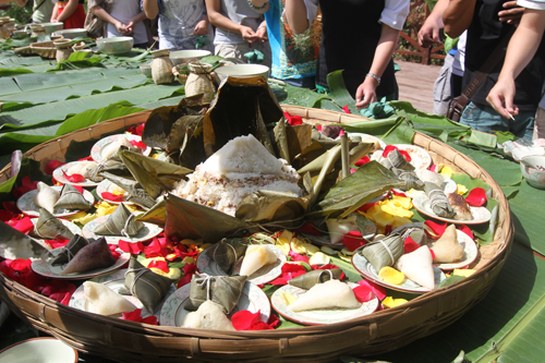 歷時(shí)一個(gè)星期的少數(shù)民族粽子節(jié)在2014年6月4日這天圓滿閉幕,經(jīng)過(guò)五天的大眾投票評(píng)選,許多民族的特色口味粽得票數(shù)都不相上下,最后德昂族的酸茶粽以572的高票脫穎而出,一舉奪得這次少數(shù)民族粽子節(jié)的“粽王”桂冠。
