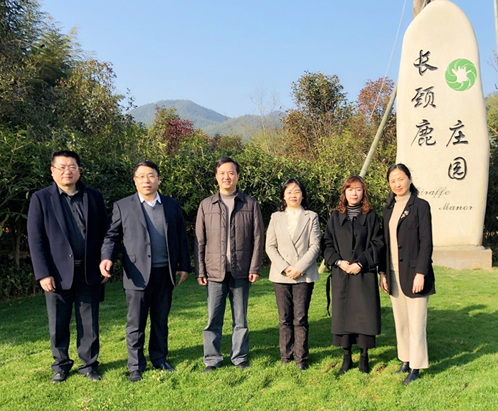 參會代表在俞錦方董事長的陪同下參觀考察長頸鹿莊園